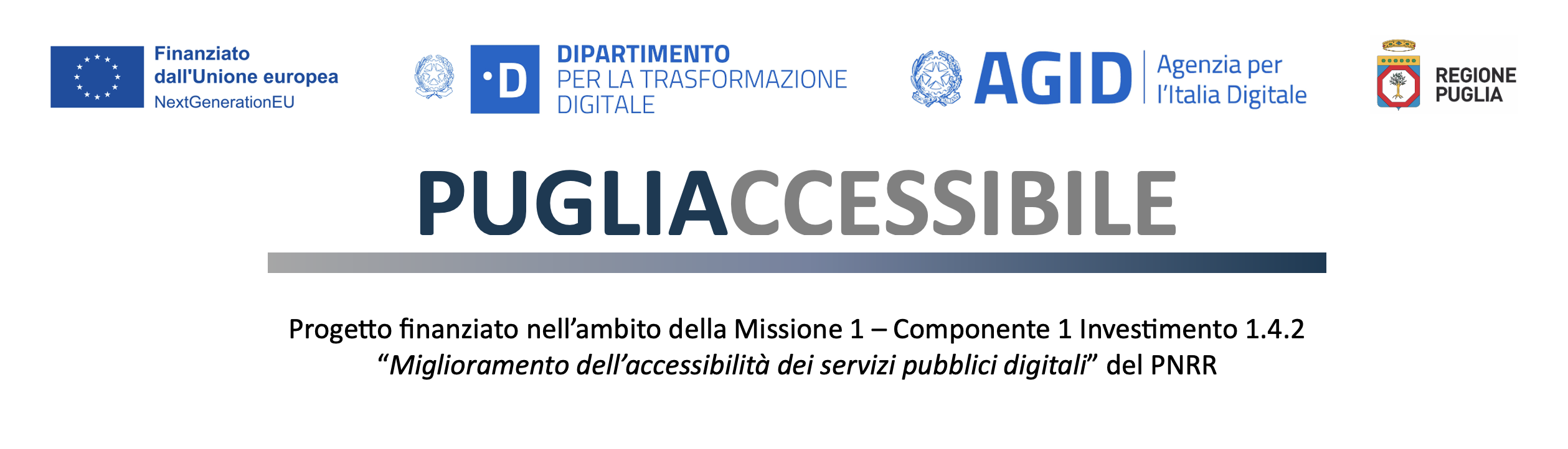 Il progetto “Miglioramento dell’accessibilità dei servizi pubblici digitali”, inquadrato nell’ambito della misura nazionale 1.4.2 del PNRR dell'Agenzia per l'Italia Digitale (AgID) e del Dipartimento per la Trasformazione Digitale (DTD) della Presidenza del Consiglio dei Ministri, ha come obiettivo prioritario il miglioramento dell'accessibilità e dell'utilizzo dei servizi digitali regionali erogati al pubblico, in modo da consentirne l'utilizzo da parte di chiunque.