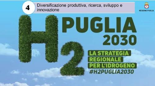#H2Puglia2030 rappresenta la vision di alto livello dell’Amministrazione regionale, che pone al centro la politica di decarbonizzazione e offre un quadro prospettico che incide, tra l’altro, sulle politiche della transizione energetica, della ricerca&sviluppo, dell’innovazione, dei trasporti, dell’ambiente, con l’obiettivo di integrare la catena del valore dell’idrogeno, esaltando il protagonismo del territorio attraverso un articolato percorso di condivisione con i principali stakeholder regionali e nazionali.